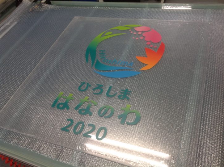 塩ビシートにインクジェット出力で印刷した後に、形状カットをすることが可能です。