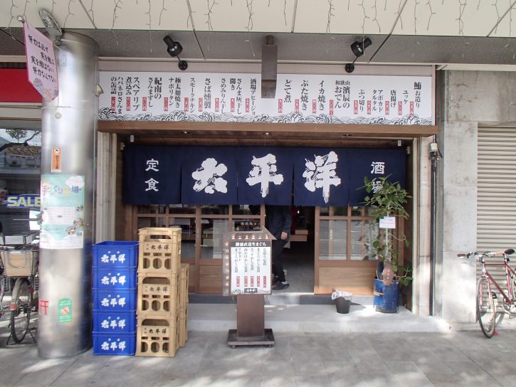 一番目立つ所や店舗の壁面に屋号などをいれる、代表的な看板です。