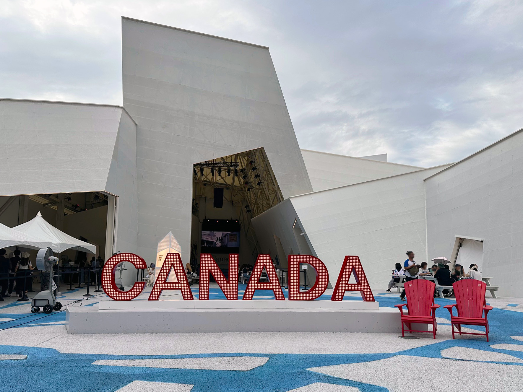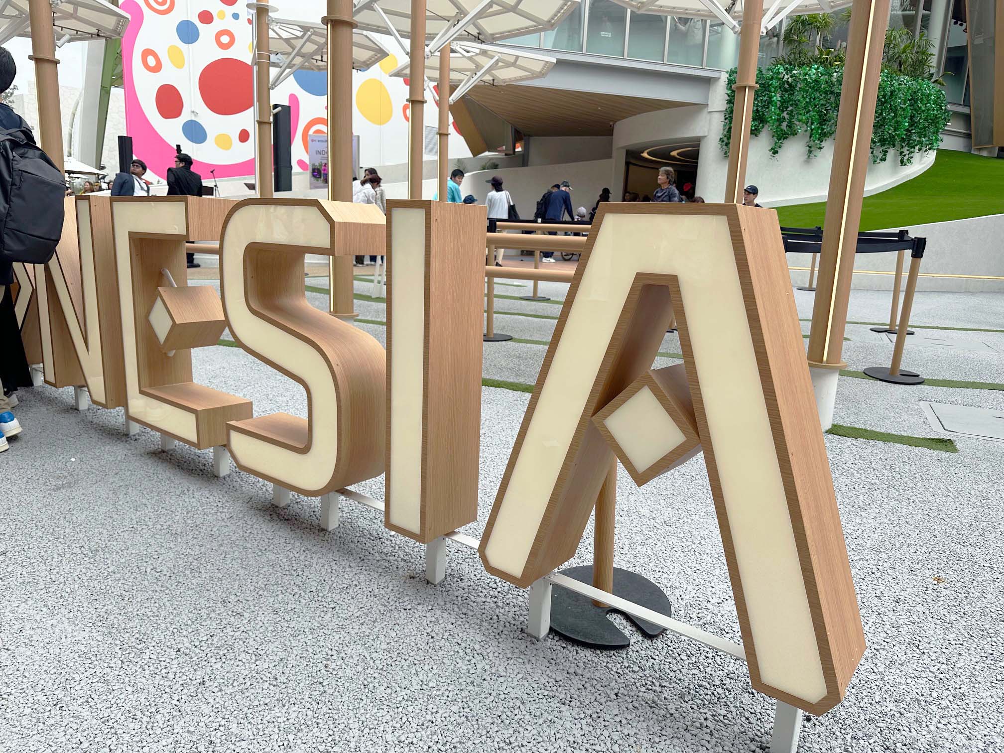 色使いもシンプルながら視認性が高く、たくさんのパビリオンが立ち並ぶ中でも自然に調和。