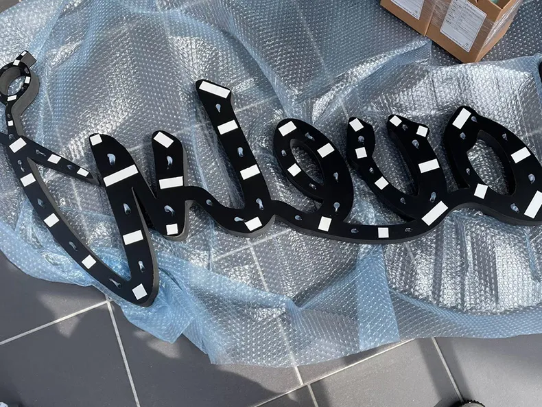 カルプとは、主に発泡ウレタン樹脂を塩ビ板やアルミ複合板などで挟んだ複合材のことで、厚みがあり、軽くて扱いやすいのが特徴です。この素材をカットして作る立体的な文字看板がカルプ文字です。