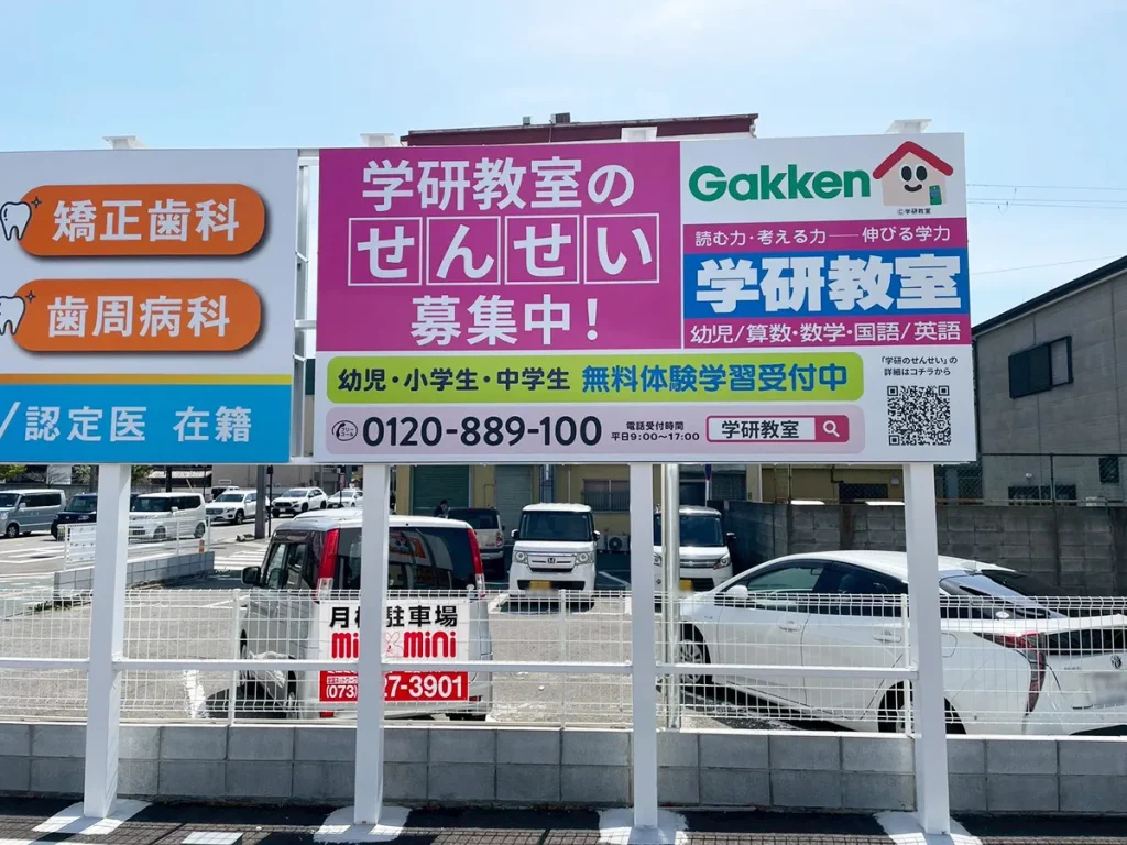 学研教室様の野立て看板を設置させていただきました。
