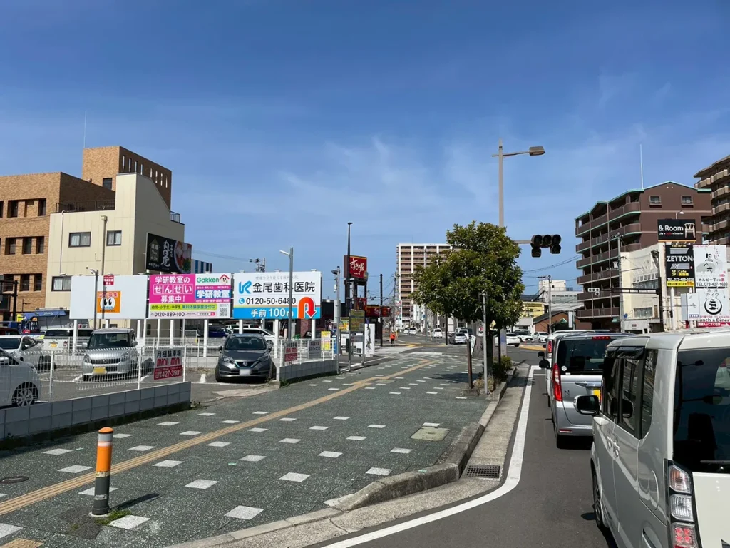 看板は、金尾歯科医院様の近くにある和歌山市の吉田交差点に両面で設置しています。和歌山駅にも近く、市内でも交通量の多い交差点のため、多くの通行車両へアピールできる立地です。