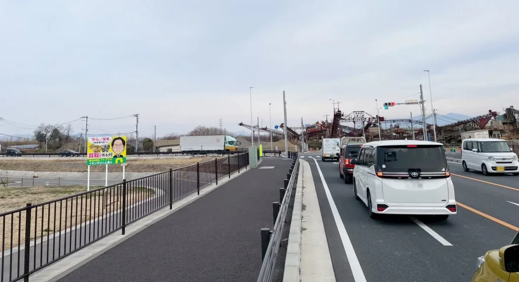 交差点付近に位置し、信号待ちで停止するドライバーの目に入りやすいため、認知拡大や来店促進が期待できる野立て看板です。