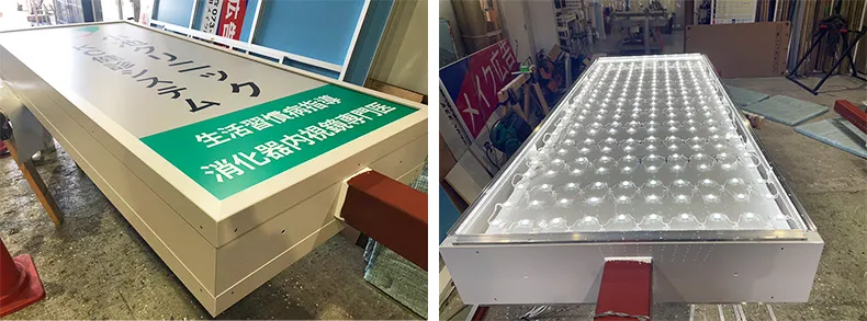 内照式自立看板は、昼夜問わず視認性が高く、クリニックや病院など初めて来院される方が多い施設にとって、とても効果的な案内サイン です。ご希望のお客様は是非メイク広告株式会社へお問い合わせください。
